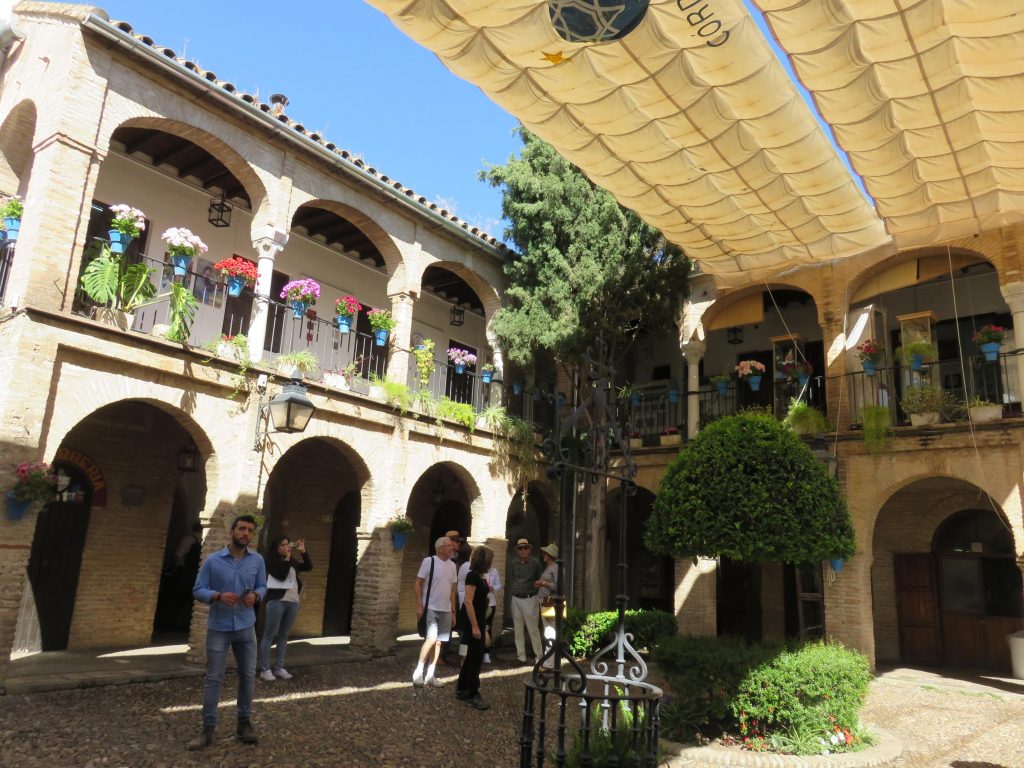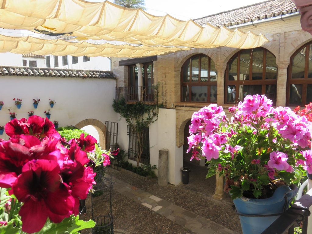 En Patios de Córdoba 2017_1ª parte os contaba el recorrido por la ruta completa Santa Marina – San Agustín. En esta segunda parte os voy a hablar de patios que fuimos conociendo combinados con visitas a monumentos y lugares de esta preciosa ciudad. Hablaremos tanto de patios en concurso como fuera de concurso. Allí donde, de camino, veíamos el tiesto forrado de terciopelo granate con el escudo de Córdoba y el arbolito, y el cartel correspondiente… allí entrábamos.