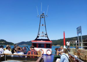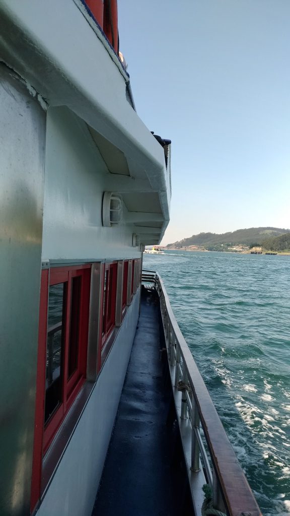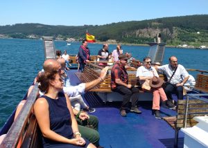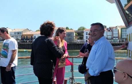 Nos esperaba la lancha «Rías Altas I» para darnos una vuelta por la Ría de Ferrol y disfrutar de las bellas vistas de Mugardos y de todo su entorno desde el mar, mientras degustábamos el pulpo a la mugardesa. A pie de muelle nos recibía Patricia Casal Castro, técnico de Turismo en el Concello de Mugardos y nos daban también la bienvenida la alcaldesa de Mugardos, Pilar Díaz Otero, y la concejala de Cultura y Turismo, Lola González Lorenzo.