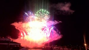 Las familias continuamos reuniéndonos, el domingo de las fiestas patronales, dedicadas al Cristo de los afligidos a -guía de los hombres del mar-, cofradía de las más antiguas de la ría de Vigo, ya hay constancia documental de su existencia en el S XVIII. Cuando yo era niña, la procesión en las fiestas llegaba hasta el final del muelle –no confundir con el relleno- y una vez allí se orientaba la imagen del Cristo de los afligidos hacia el mar, las familias que habían perdido a sus seres queridos en naufragios o accidentes lejos de tierra firme tiraban flores al mar. En las fiestas también conmemoramos la festividad de la virgen del Carmen, no podía ser de otra manera en una villa marinera. Se come en familia, tras haber estado tomando vinos en la alameda oyendo a la banda de música y ya por la noche se ven “los fuegos”, un espectáculo pirotécnico que tiene mas de 400 años de antigüedad, muy valorado por propios y turistas.