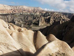 Muy contentos de haber decidido este previo paso por estos valles antes de llegar al mar. Nos quedamos varios días en una de las posibles «bases» para conocer la zona; a nuestro juicio, una vez conocido el entorno, una de las más atractivas, Gorëme. Un sitio encantador, que conjuga con bastante fluidez varios factores, que no siempre resultan en mezcla exitosa en otros lugares: fama y tranquilidad, turismo y vida local, alojamientos y preservación del entorno…Nos reafirmó en nuestra idea de esta Capadocia en autocaravana.