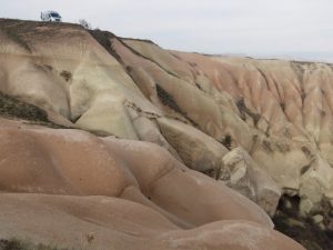 Volviendo a la ruta, la cosa es que bajemos por donde bajemos, nos vamos a encontrar con el invierno…y es que el interior turco está lleno de montañas, y no precisamente montañitas…para llegar a la cálida costa mediterránea, donde daban temperaturas rondando los 20 grados, por numerosos pasos hay que cruzar puertos de, por ejemplo, entre 1600 y 1800 metros. Iremos viendo en nuestro recorrido por Capadocia en autocaravana….