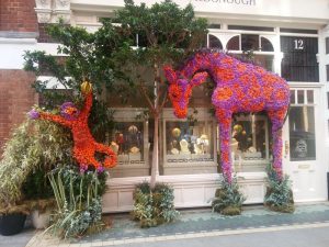 Al salir, pasear por el barrio de Chelsea te transportaba a un gran safari, de animales hechos con flores colocados en los escaparates de las mejores tiendas, pero también en la calle, donde los niños se acercaban para ver a su animal favorito.