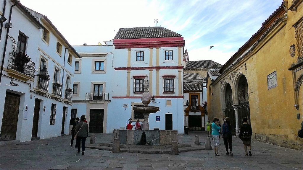 Y de camino a la Axerquía nos encontramos con la Plaza del Potro, llamada así no se sabe bien por qué, hay quien dice que en ese lugar se vendía ganado, otros que su nombre deriva del potro que tiene su fuente central, algunos cuentan que había un mesón allí con ese nombre … ¡quien sabe!