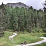 Septiembre seguía, y nosotros con él….Y las montañas de los Dolomitas siguen impresionando desde los distintos ángulos, con distintas luces, bajo todos los cielos…Cruzamos valles y descubriendo lugares, pasamos de largo la afamada y muy turística Cortina d’Ampezzo buscando rincones más tranquilos; nos gustó Misurina y su lago, donde hay un área autocaravanera de altura, a nada menos que 1800m…que parece estar en un paisaje digno de las Rocosas canadienses, con las moles pétreas dolomíticas y unas extensas praderas con caballos pastando a sus pies. Para nosotros…¡un paraíso! Pedaleamos al col di Varda, donde también llega una telesilla, pero qué tendrá lo del esfuerzo, que luego las vistas gustan más…o será que nosotros somos un poco masocas, jajaja.