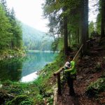 Nosotros empezamos nuestro periplo por este territorio en el lago di Carezza, un lago verdiazul que refleja las agujas del grupo Latemar. ¡Un lugar mágico!