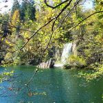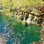 Plitvice es un parque nacional de naturaleza privilegiada en la que sobre todo destaca el AGUA: un montón de lagos de montaña unidos entre sí por cascadas y saltos de agua de diverso tamaño y espectacularidad. El agua de los lagos es tan transparente que a la vez que caminas a sus orillas puedes ver cientos de peces (para regocijo de Noa), y el toque de las hojas otoñales flotando en ellas le otorga un ambiente especial. Las cascadas son de quedarse con la boca abierta… Y el telón de fondo de los coloridos bosques de octubre no hacía sino aumentar el espectáculo. Y es que, definitivamente, poder ver Plitvice en un perfecto y caluroso día de otoño es, simplemente…¡algo maravilloso!
