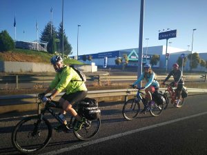 Abrochándonos los cascos y asegurando las alforjas empezamos a pedalear esta vez en grupo de cuatro, así los kilómetros se hacen más llevaderos siendo una etapa muy similar a la de ayer 120 kilómetros a lo largo de ello nos encontramos muchos peregrinos en el camino.