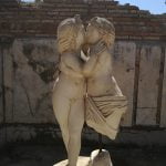 Y por último, rebuscando sobre el mapa lo que habíamos visto y lo que no, figuraba un sitio que no habíamos visto y cuyo nombre nos llamó mucho la atención, era psicológicamente sugerente, el Domus di Amore e Psiche… ¡qué combinación! ¡No paramos hasta encontrarlo! “Domus” palabra latina con la que se denomina a la vivienda romana de las familias de un cierto nivel económico, cuya cabeza de familia (paterfamilias) llevaba el título de “dominus”. Y dando vueltas, súbitamente apareció… ya nos íbamos, pero aunque muy cansadas decidimos insistir, y valió la pena… de una belleza única desde todos sus ángulos; el original se encuentra en el Museo de este sitio arqueológico.
