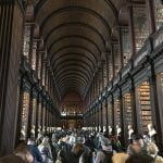 En el Trinity se perciben ya algunos temas que se repiten por la ciudad. De origen protestante, el Trinity no admitió estudiantes católicos hasta 1793. Como a Irlanda, y a Dublín por tanto, no le faltan escritores de renombre, alardean de ellos sin falsa humildad. Wilde, Beckett, Stoker, Burke…todos fueron alumnos del Trinity.