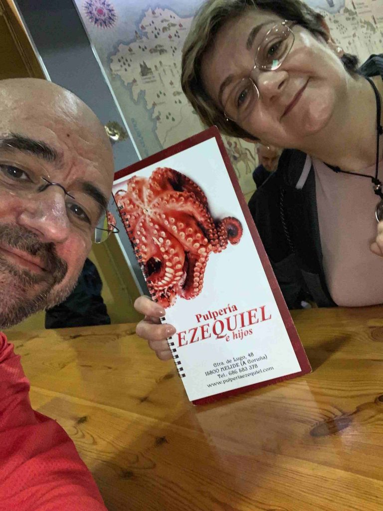 Eso y un factor que siempre hay que tener en cuenta: el pulpo y los cachelos de Melide. Nos hospedamos en el albergue-hostal A Lúa do Camiño, nuevo acierto de Noelia. Y aunque para llegar al centro del pueblo había que caminar cuesta arriba, nosotros teníamos una misión: cenar en Ezequiel, y eso hicimos. Raquel, a quien le encanta el pulpo, da fe de que sin duda mereció la pena «arrastrarse» hasta esta pulpería que va a lo esencial: buen producto, mesas largas en un ambiente de compartir el placer de estar juntos.