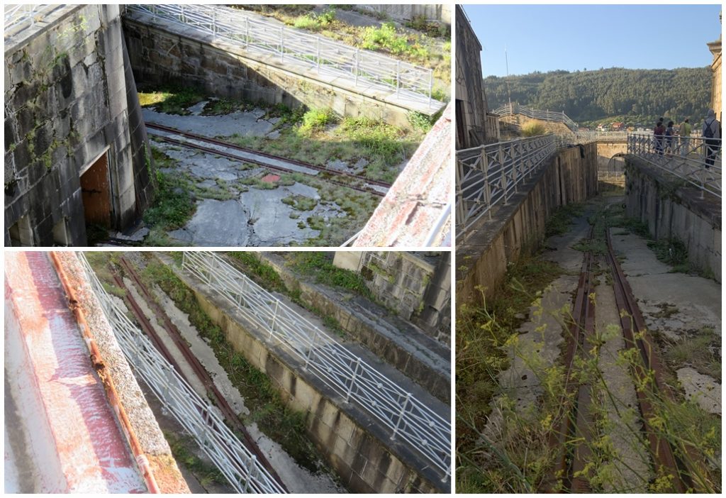 Desde ese muelle por un sistema de raíles se distribuían las pesadas cargas de artillería, mediante vagonetas, por todo el recinto hasta el polvorín que se encontraba debajo de la gran casamata.