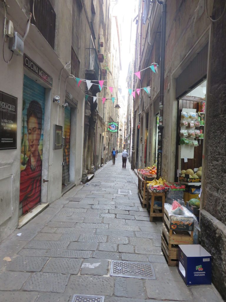 En esta zona genovesa existen numerosos locales donde comer pizzas, focaccias, piadinas… Yo comí en uno de ellos y enfrente había un panadero obrador que durante el tiempo que estuve observándolo tuve la impresión de que en aquel obrador se cocinaba toda la pasta de Italia.