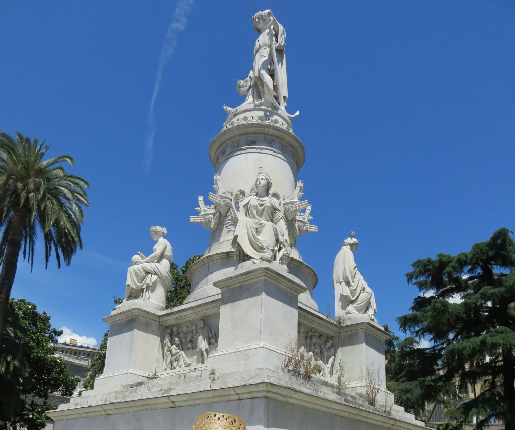 Genovés o no, Cristóbal Colón nos recibe al salir de la estación de ferrocarril “Génova Piazza Príncipe».