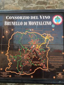Este mapa describe muy bien la concentración de bodegas alrededor de Montalcino produciendo su querido Brunello. En elviajeroaccidental no nos vamos a decantar por uno u otro vino toscano. En Montalcino estuvimos poco tiempo y nos pareció más pintoresca pero menos surtida de arte que las villas anteriores. Pero merece la pena su visita.