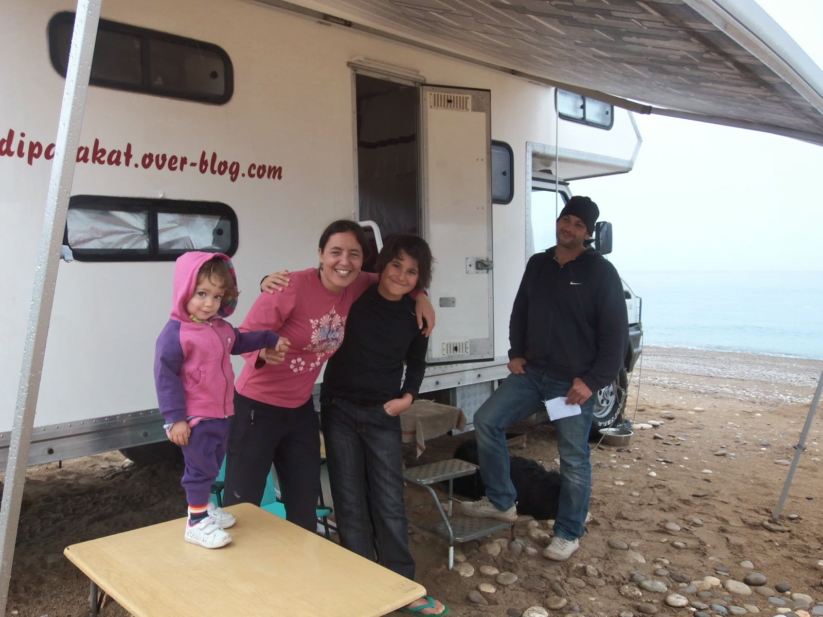 cuyo blog, www.dipatakat.over-blog.com, curioso nombre haciendo referencia a….¡el número de extremidades que suman los miembros de su viaje en familia! diez «patas», de Arnaud, de Flo, de Éol, su hijo de doce años y de Newton, su bonito perro negro. Una familia francesa que, un buen día, dejaron su cómoda vida en la Bretaña, y está empezando un periplo que también desde Turquía les llevará hacia Irán, India, Nepal y…ya irán viendo. Como todos los largos viajes, (como la vida también…), que se van haciendo, creando paso a paso…les seguiremos en la distancia…