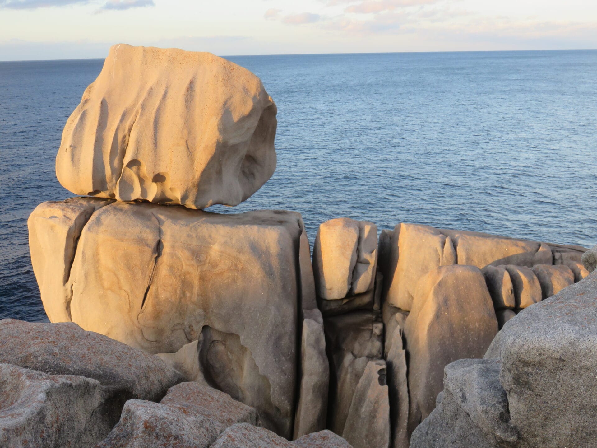 Las rocas al llegar a su posición actual es cuando sí son erosionadas por el viento ayudado por el mar, concretamente por la sal del mar. La erosión con el paso del tiempo va realizando formas curiosas y bellísimas. Podemos observar agujeros en su superficie, las llamadas pías o cacholas en gallego que se llenan de agua, o formas curiosas que sirven para evocar distintas fantasías en nuestra imaginación.