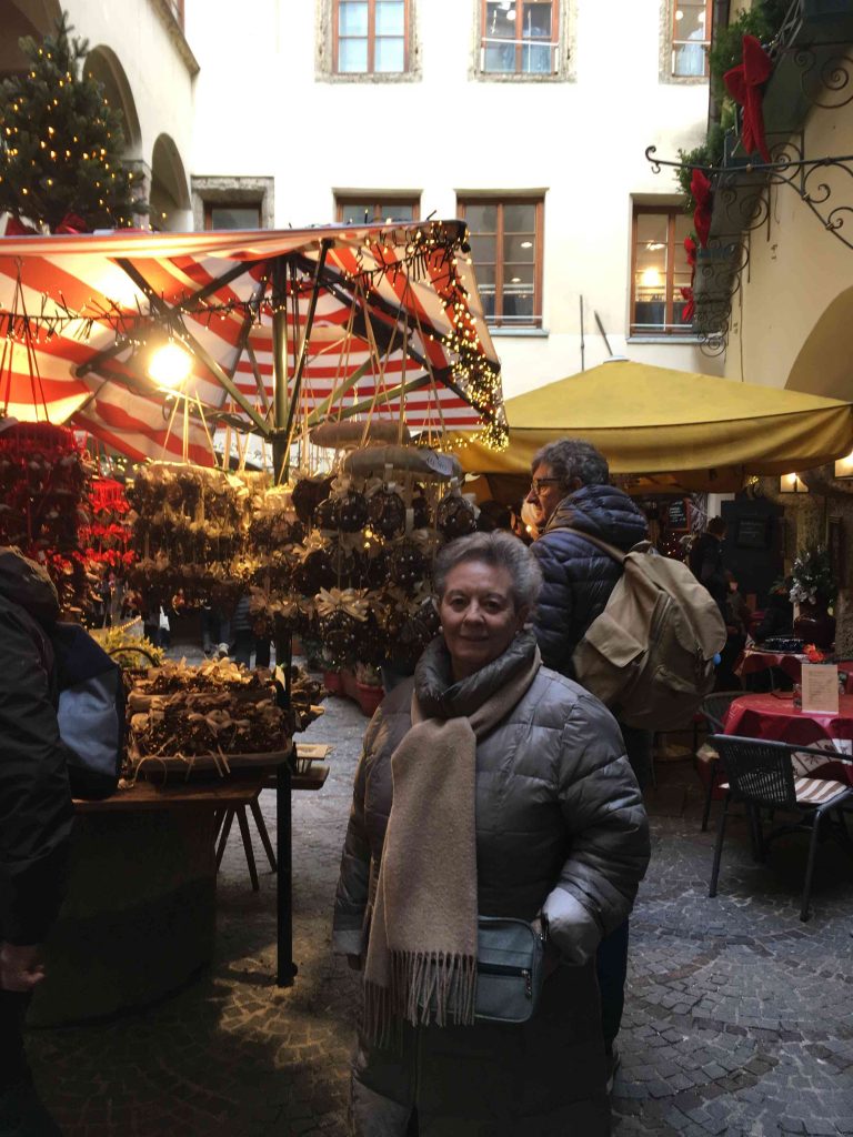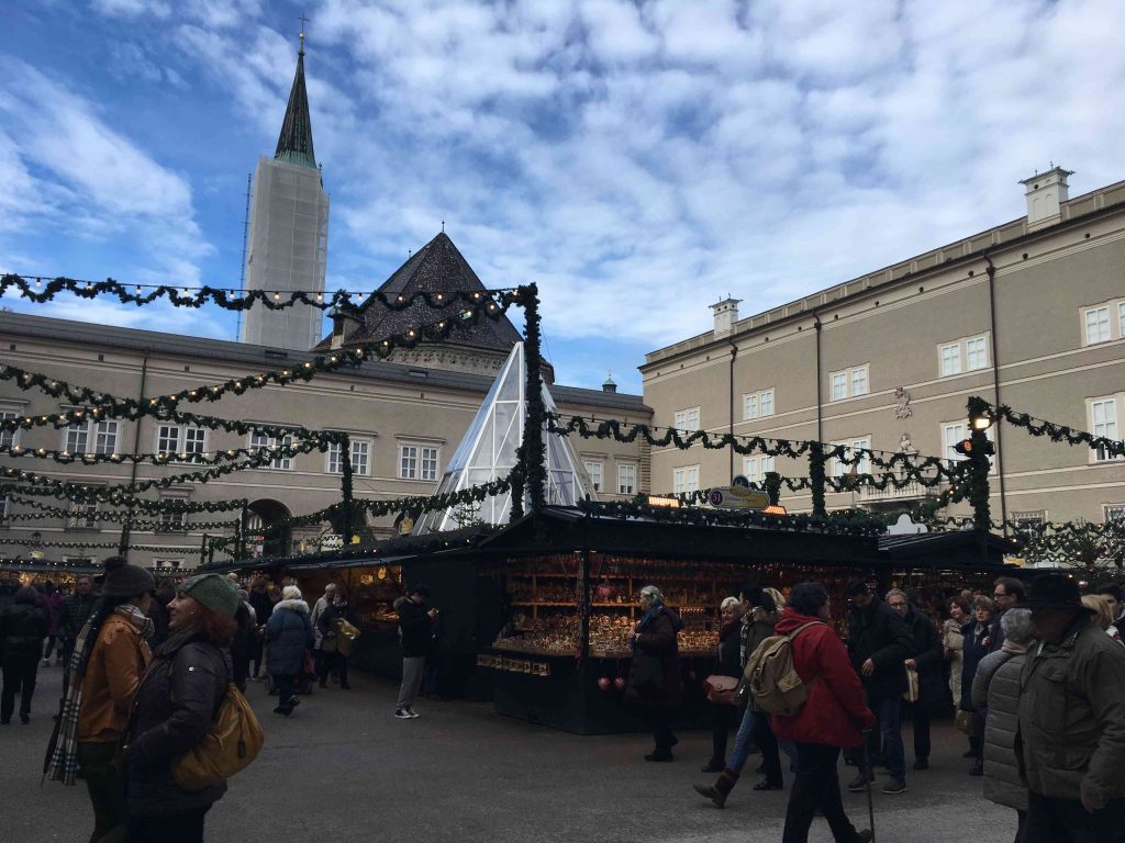 Llegamos a Getreidegasse, dónde se encuentra la casa natal de Mozart, es la calle donde están la mayoría de las tiendas, en cuyas fachadas cuelgan los típicos letreros de hierro forjado. Salpicada de callejones laterales que nos conducen a pequeñas plazas, que en esta época están profusamente decoradas y albergan pequeños y coquetos mercados navideños. Uno de los más conocidos es el Stern Advent Markt otra joya escondida en el patio del Sternbräu, se puede admirar artesanía tradicional y su principal característica es que los beneficios son donados a los necesitados.