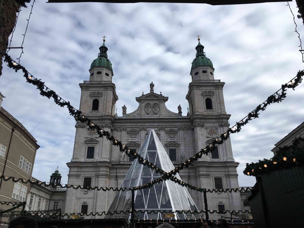En la nave llama la atención su estuco y los frescos del techo que ilustran la Pasión de Cristo y la cúpula policroma. Mozart compuso aquí su música sacra y fue organista de la catedral. En la plaza de la Catedral (Domplatz) y de la Residencia (Residenplatz) se instala el principal mercadillo navideño de la ciudad: el mercado navideño del Niño Jesús (Christkindlmarkt). Se compone de numerosos puestos (más de 85) dónde se venden productos variados (adornos navideños, velas, flores, incienso, alimentos, vino caliente con especias, artesanía, juguetes…). También hay actuaciones de canciones tradicionales para niños y grupos escolares.