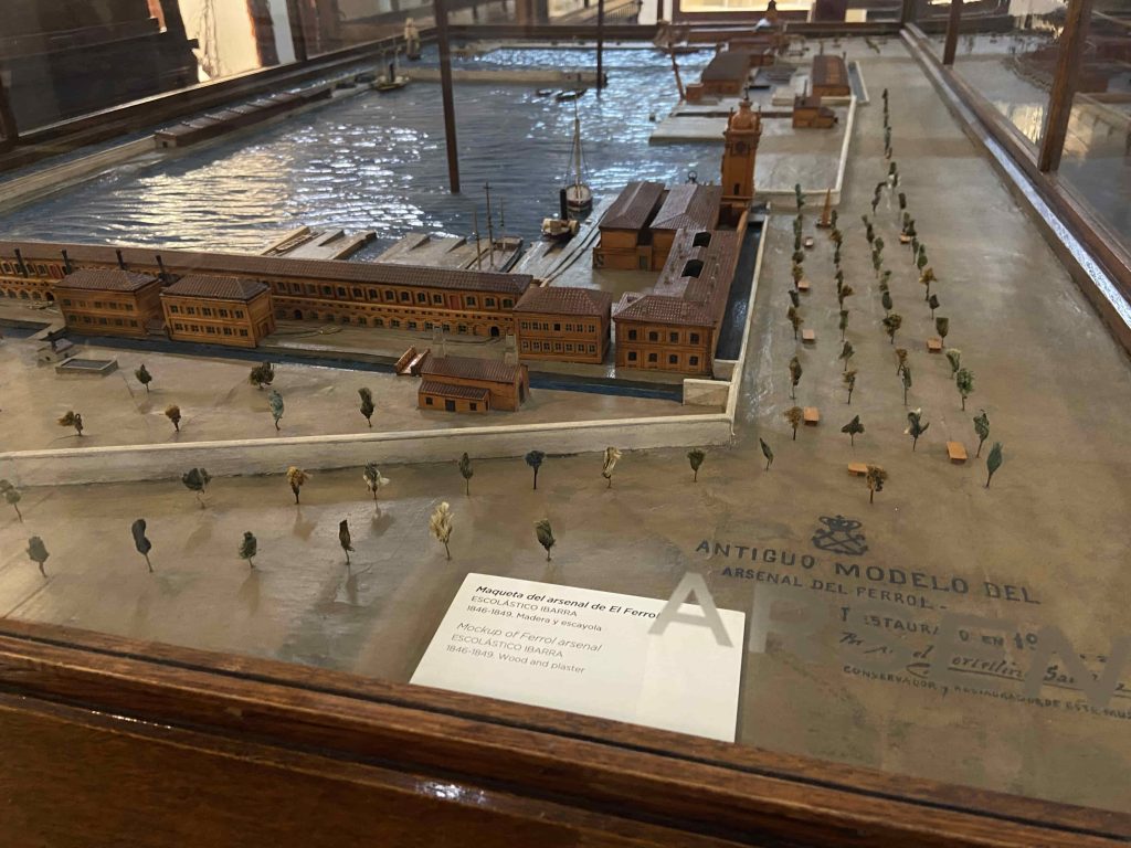 E igualmente recomendamos las maquetas y paneles que recogen la historia de la creación de los arsenales navales en el siglo XVIII: Ferrol, Cartagena y La Carraca (Cádiz).