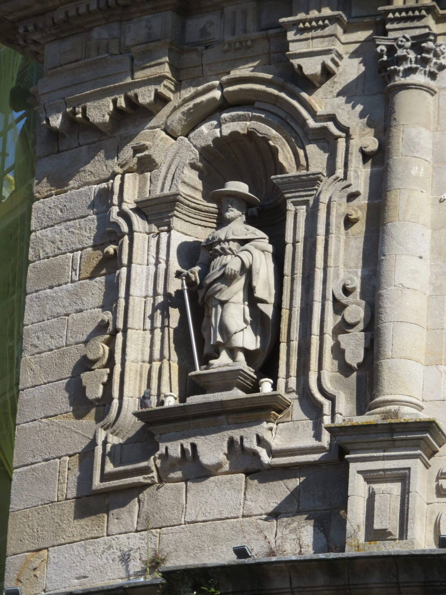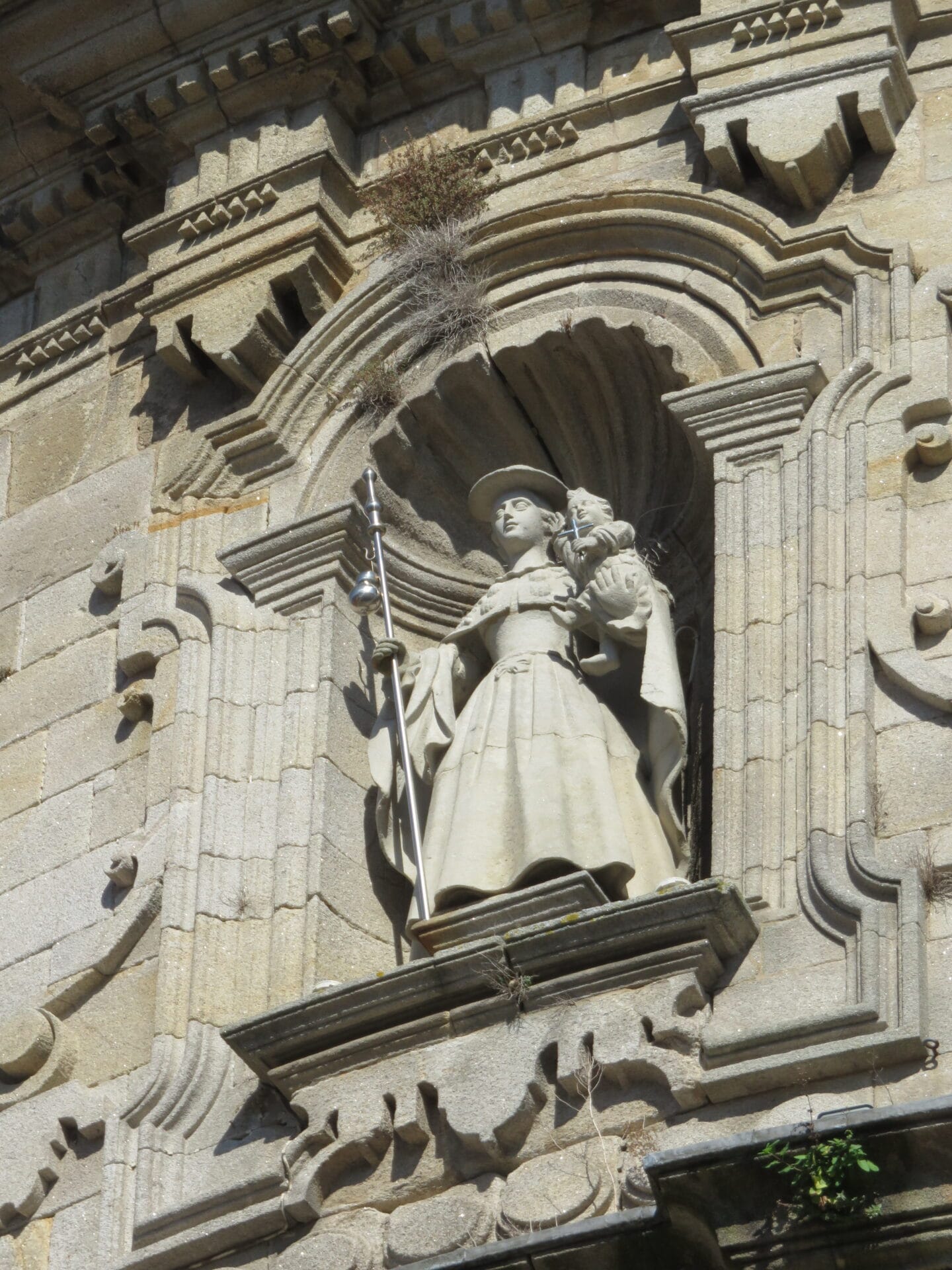 Como podemos observar en las siguientes fotografías, en su fachada encontramos las imágenes de Santiago, la Virgen y San José ataviados con indumentaria de peregrinos.