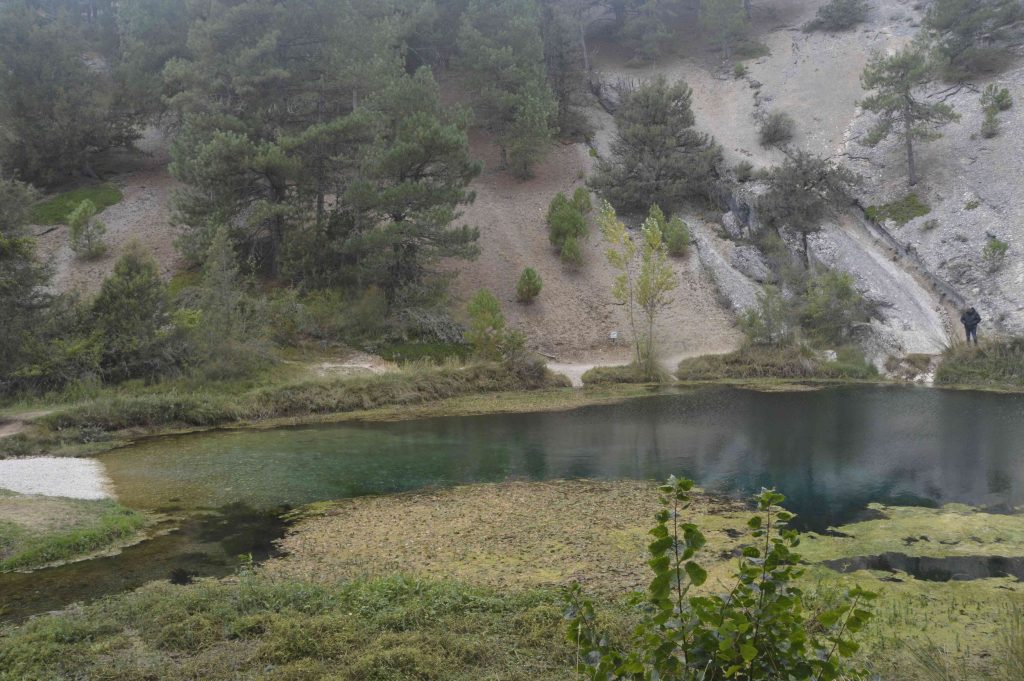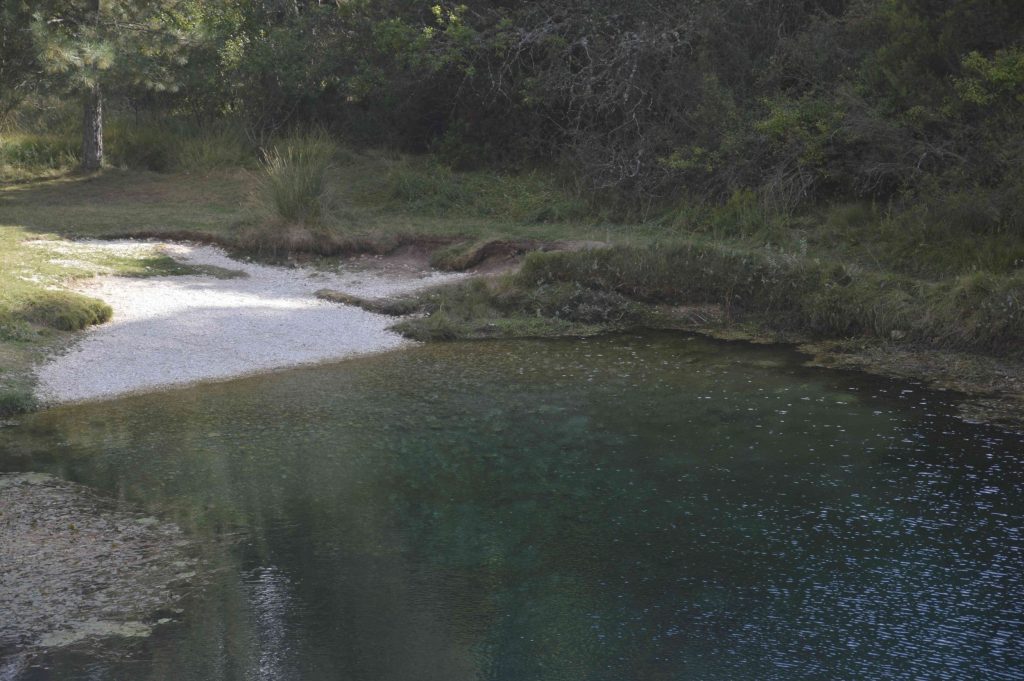Es fascinante, y se explica en los paneles informativos que hay a la entrada del recorrido que conduce a La Fuentona, el origen de esta surgencia. El suelo calizo es como un queso lleno de agujeros que recoge el agua de lluvia y que lo almacena en un inmenso lago subterráneo. La inclinación del suelo hace que el agua surja por La Fuentona.