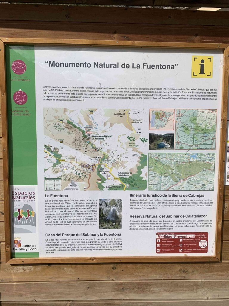 Nuestro recorrido nos va a llevar en primer lugar a la Reserva Natural del Sabinar de Calatañazor, de ahí al Monumento Natural de La Fuentona para terminar subiendo al mirador del Mirón en la Sierra de Cabrejas.