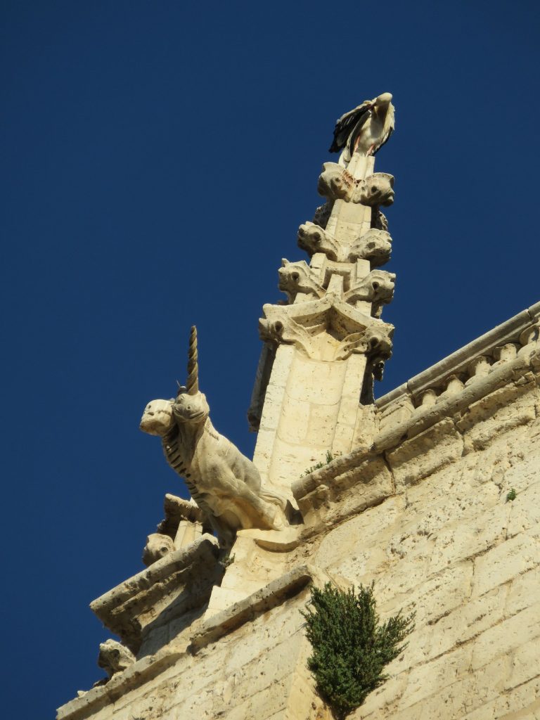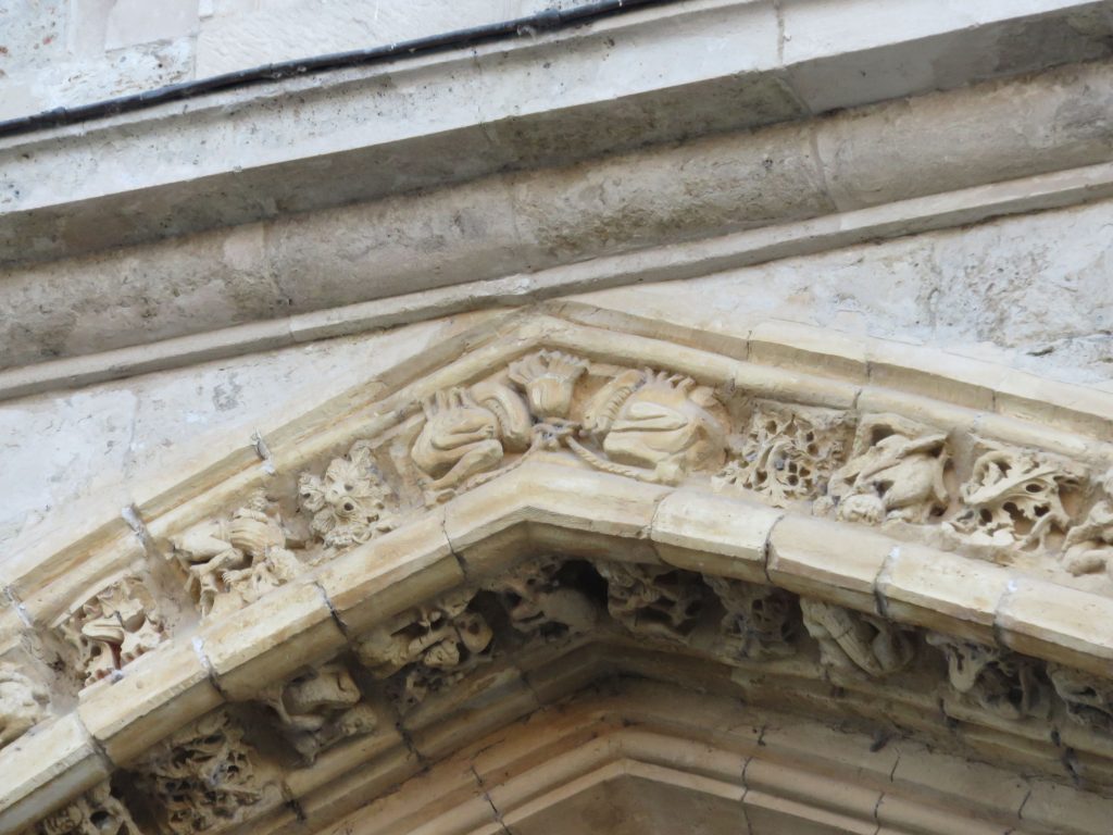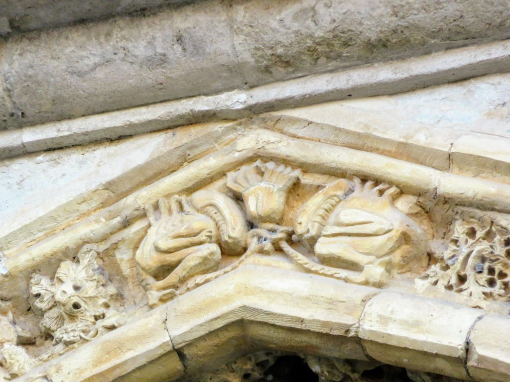 Nosotros hicimos la visita con ayuda de un guía local, nos fuimos fijando en detalles y curiosidades singulares que no le faltan. Es más, os propongo un juego, en el exterior de la catedral, en una de sus puertas, si miramos con atención nos encontraremos con «dos aliens». Es fruto de una restauración realizada en 1995, la película de ciencia ficción ya se había estrenado, el restaurador Díaz-Pines se permitió la licencia de realizar el boceto que llevaron a cabo los canteros. Os daré una pista «los aliens» están en la arquivolta exterior de la Puerta de los Reyes, poner atención.