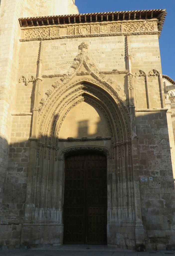 Está medio «tapada» por la Capilla del Monumento, que se construye anexa por lo que sobresale del contorno de la catedral. En ella se encuentra la puerta de San Antolín.